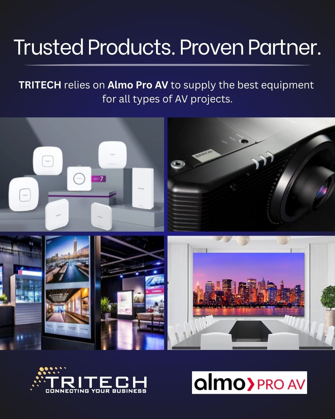 Every project is different. The standard we hold ourselves to is not. TRITECH Communications relies on Almo Pro AV for a wide range of trusted products across all types of AV projects—from conference rooms to large-scale production. When we trust the products and the support, we can focus on delivering the best results for our clients.